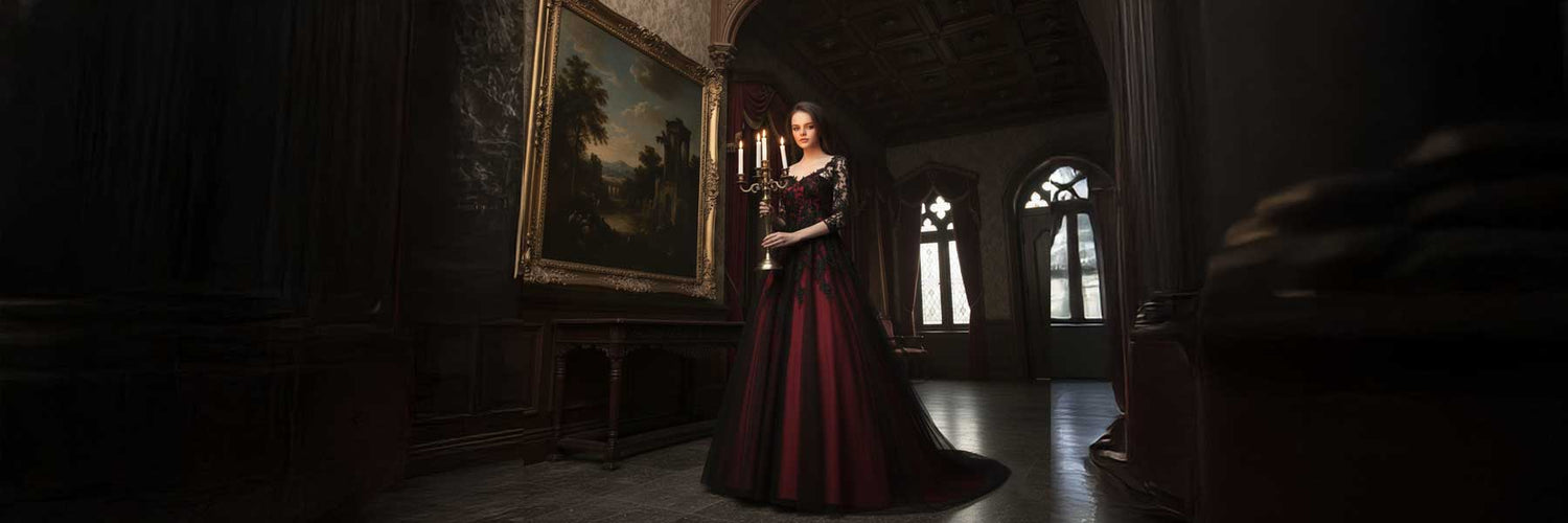 Black Gothic Halloween Lace Wedding Dress with Chiffon sleeves | ISODIE