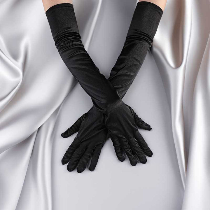 Black Long Opera Satin Gloves for Black Tie, Gala, Formal Occasions AC1011