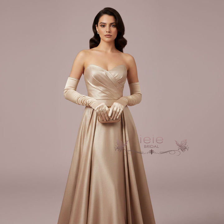 Champagne Long Satin Opera Gloves for Formal Events AC1011
