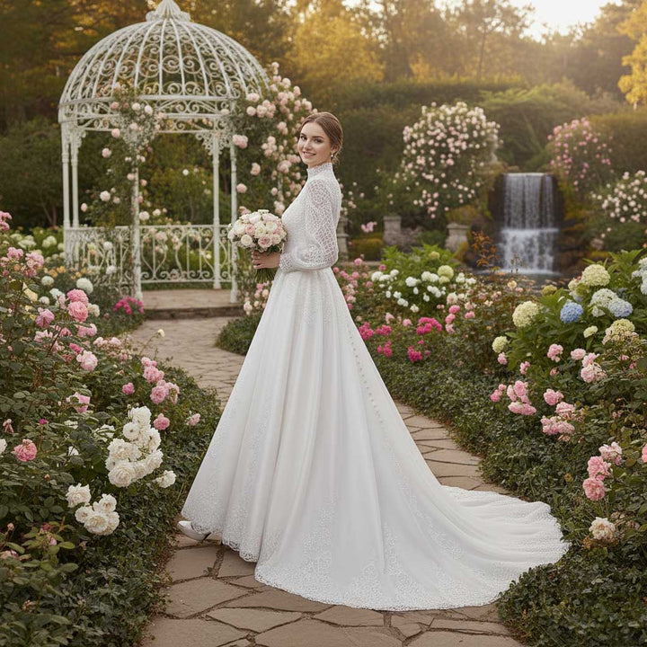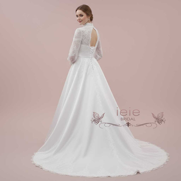 Long Sleeves Lace Wedding Dress with High Neck | Benedicta