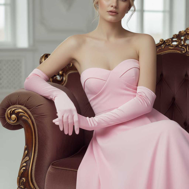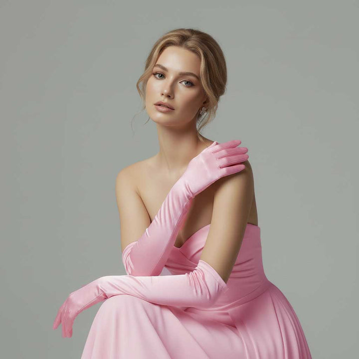 Pink Long Satin Gloves for Opera, Black Tie, Gala, Formal Occasions AC1011