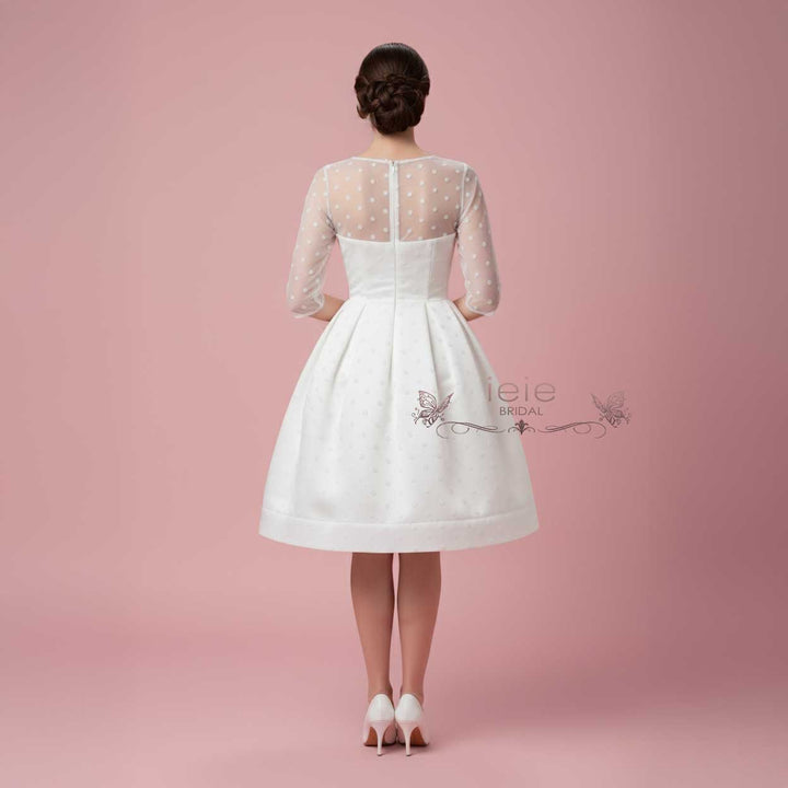 Retro style short wedding dress that is elegant and classy, perfect for court ceremony or reception parties.