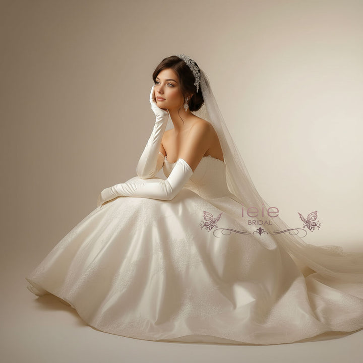 White Ivory Long Satin Gloves for Weddings, Debutante, Regency Balls AC1011